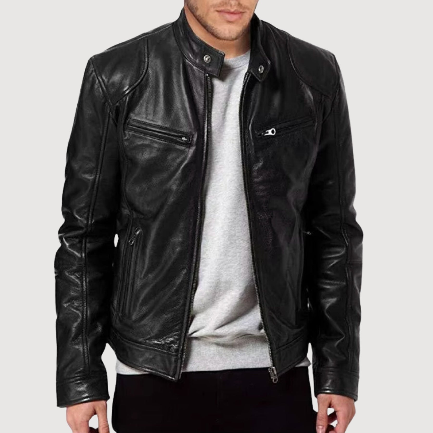 This premium leather jacket is the ideal choice for the modern man who values both style and functionality. Combining timeless design with high-quality craftsmanship, this jacket is an absolute must-have for your wardrobe. Whether you're out in the city or attending a special occasion, this leather jacket will always leave a lasting impression.